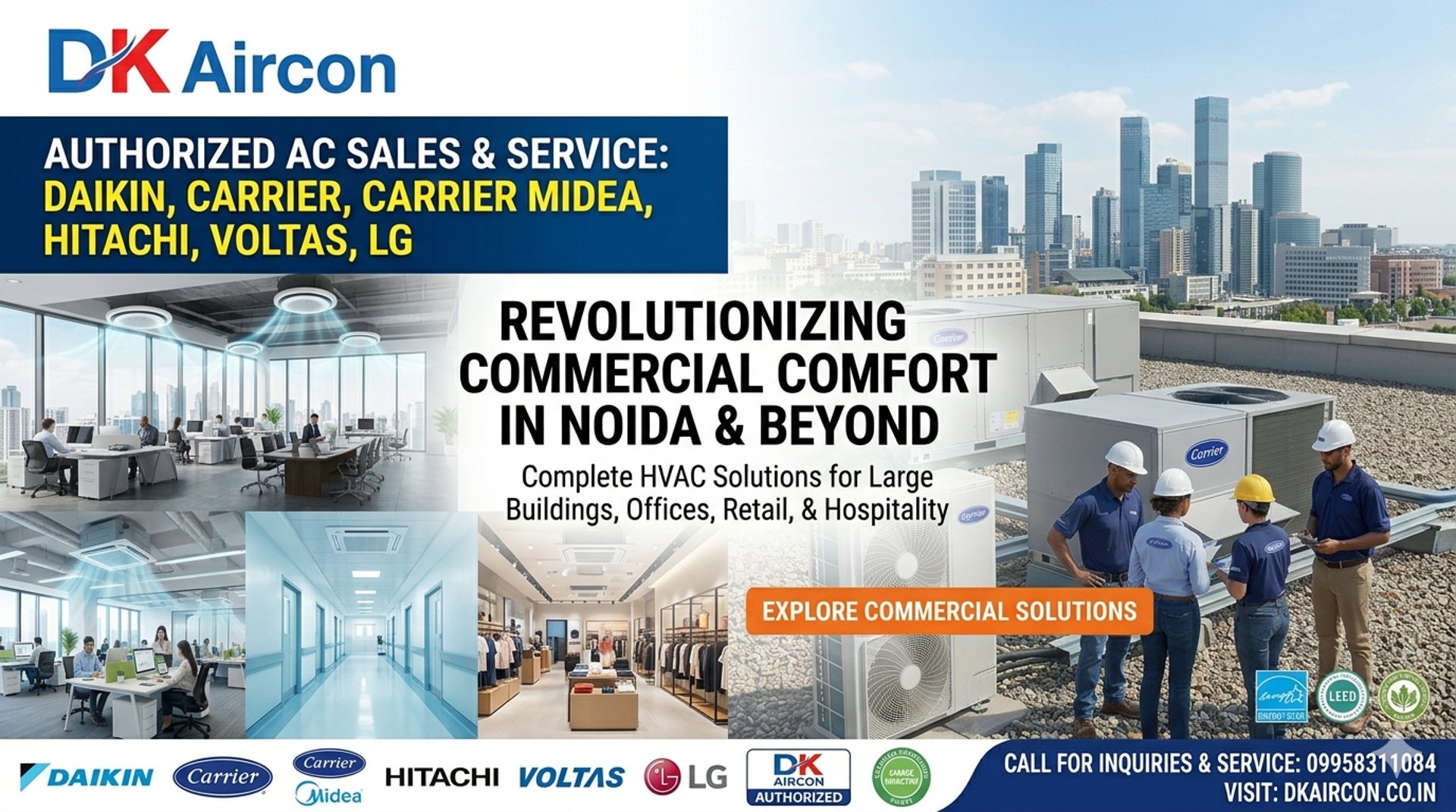 The division undertakes the Air conditioning Contracts for the Design, Supply, installation and commissioning of AC equipments. Having fully equipped workshop and installation setup unit located at Sector-60, Noida, with all modern equipments under the supervision of qualified and experienced staff to meet any type of work within a specified period of time. We have partnered with leading brands like, Carrier, Blue Star & Hitachi with whom we have been associated during these years. We are also the contract dealers of above mentioned brands in Noida.