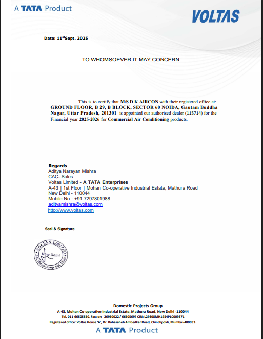 VOLTAS DEALERSHIP-CERTIFICATE