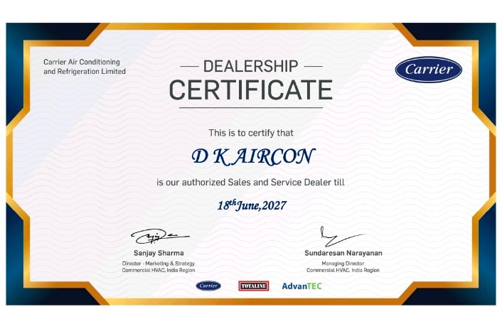 CARRIER DEALERSHIP-CERTIFICATE